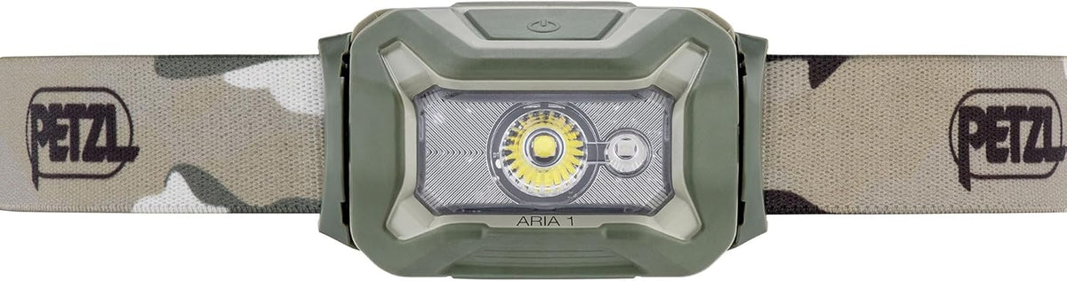 PETZL ARIA 1 RGB, Compact, Durable, Waterproof headlamp with White, red, Green and Blue Modes, 350 lumens, Camo