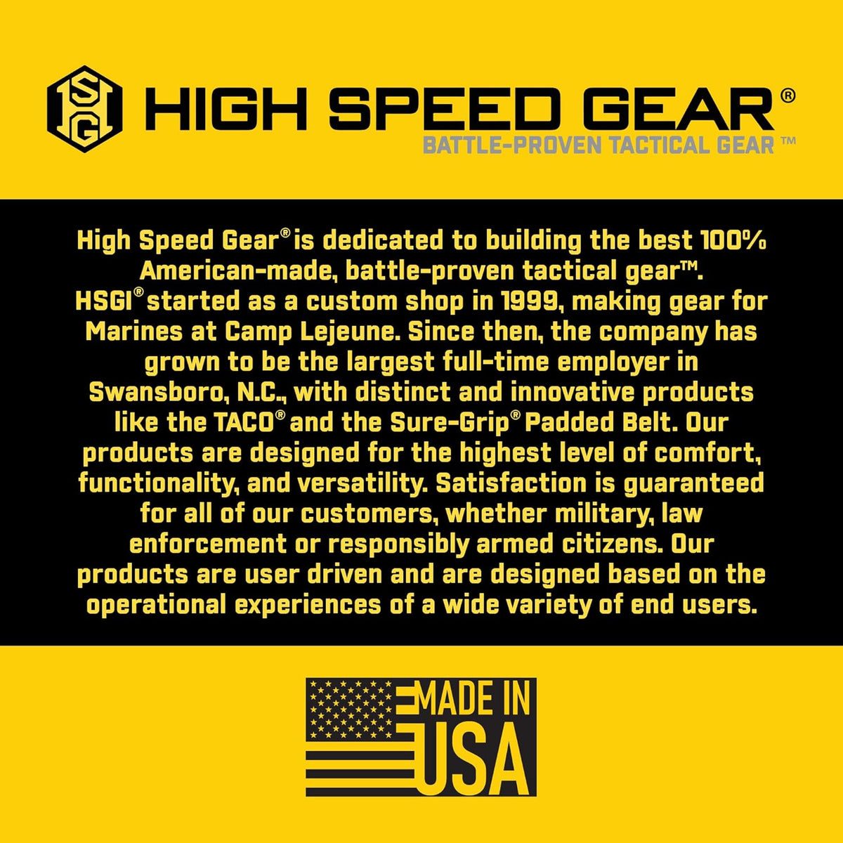 MILITARY-GRADE, PROFESSIONAL QUALITY: Trusted by the Military and law enforcement, High Speed Gear products feature unmatched materials, innovative technology, and industry leading design and construction.